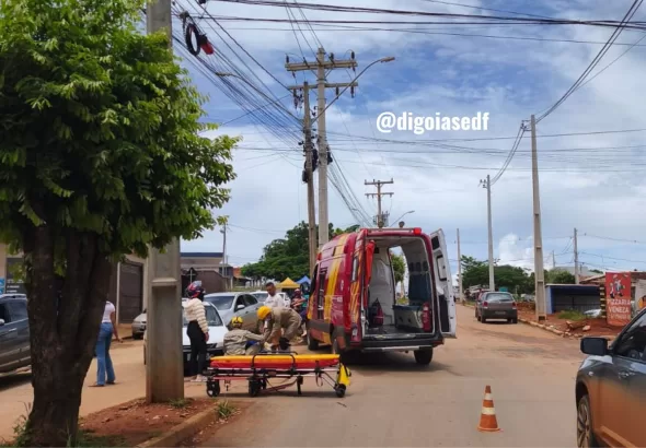 Mãe e filha são levadas ao hospital após acidente entre carro e motocicleta no Jardim Califórnia