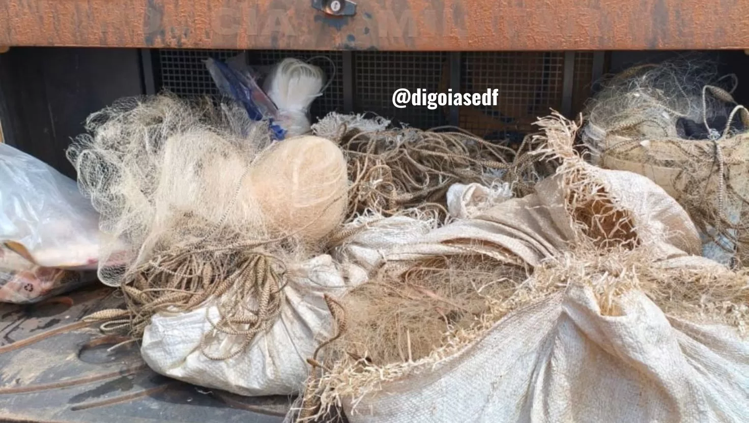 Batalhão de Operações Ambientais apreende aproximadamente 200 metros de redes de pesca predatória durante fiscalização na Barragem do Paranã, na zona rural de Formosa, após denúncias de moradores.