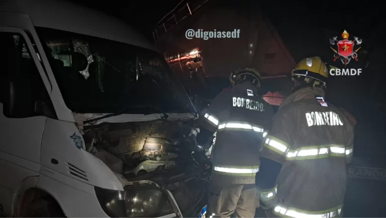Colisão frontal entre van e caminhão na BR-020, no entorno do Distrito Federal, deixa cinco mortos e...