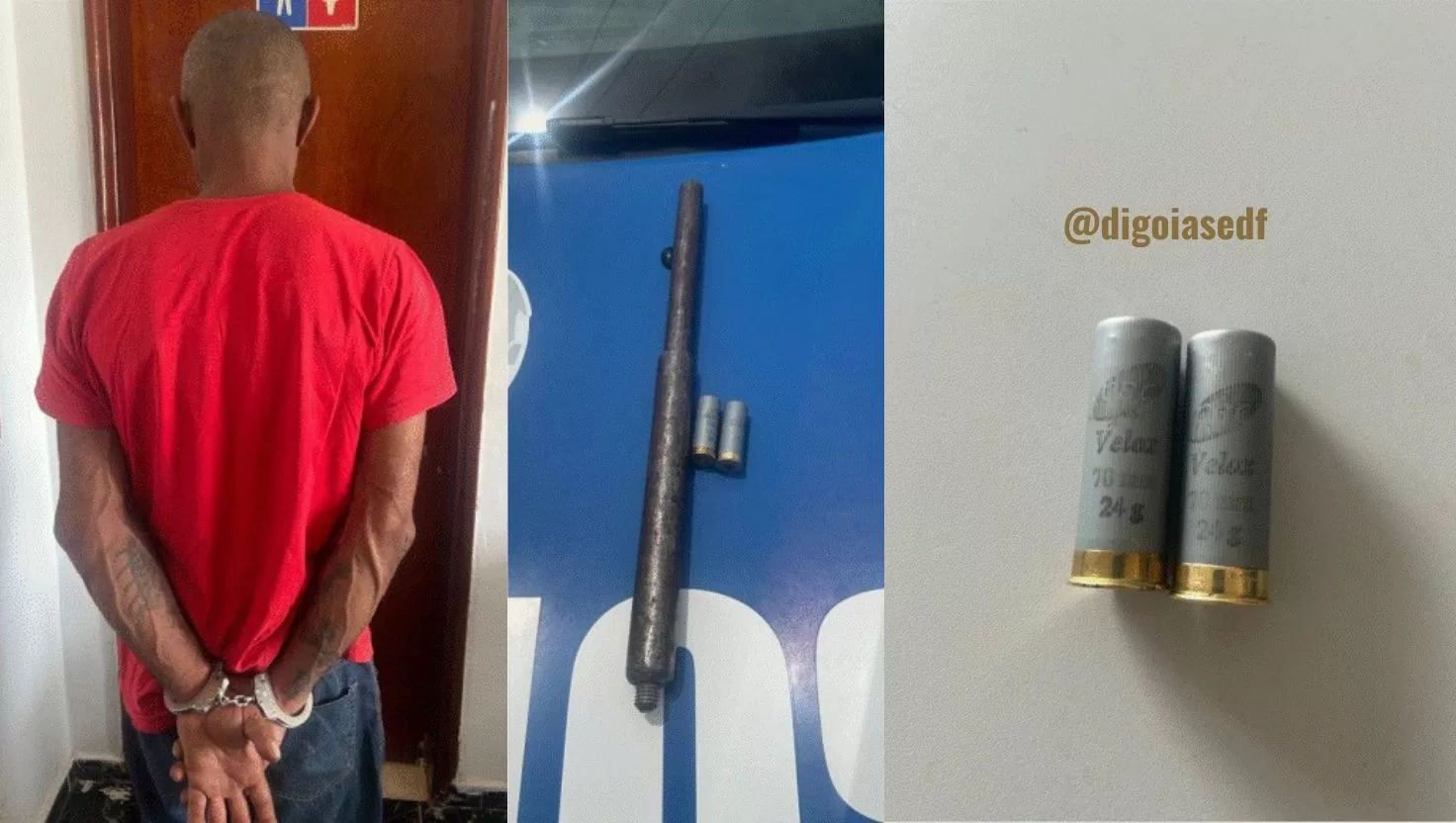 Homem de 50 anos foi preso em flagrante no Parque Vitória após descumprir medida protetiva, ameaçar a vítima e portar possível arma artesanal e munição calibre 12.