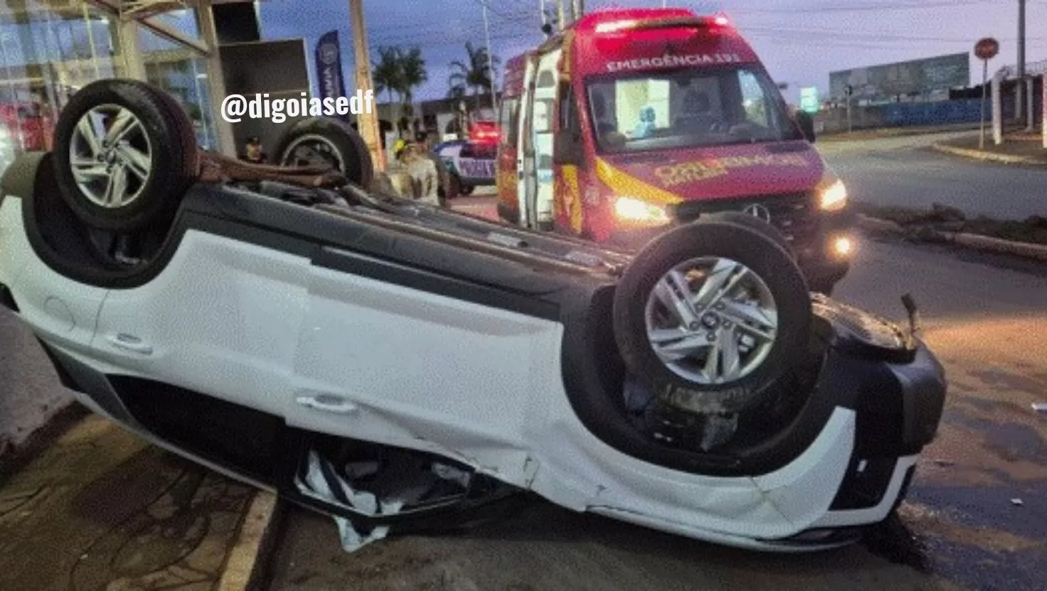 Motorista capota carro após cochilar ao volante na Avenida Tancredo Neves, em Formosa. Acidente não deixou feridos graves.