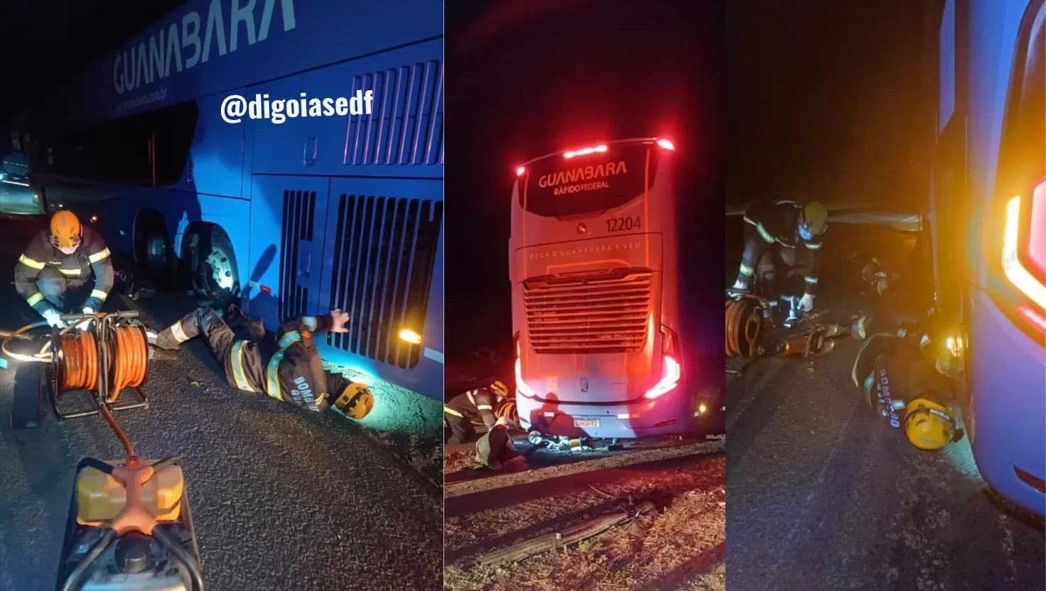 Passageiro morre ao tentar consertar ônibus na BR-020, em Flores de Goiás. Sistema de suspensão cedeu e homem ficou preso sob o veículo.